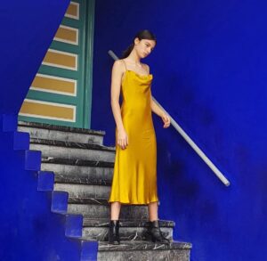 Si Chefchaouen est surnommée la ville bleue, Marrakech est entendue comme la ville rouge, la muse de notre célèbre couturier Yves Saint Laurent qui, en plus de trouver son inspiration y trouva la paix. Le passage à la maison Saint Laurent et son célèbre Jardin Majorelle est inévitable. Entre style mauresque et Art Déco dominé par le bleu intense de l’Atlas, Loli et Rodney prennent la pose au milieu d’allées ombragées.